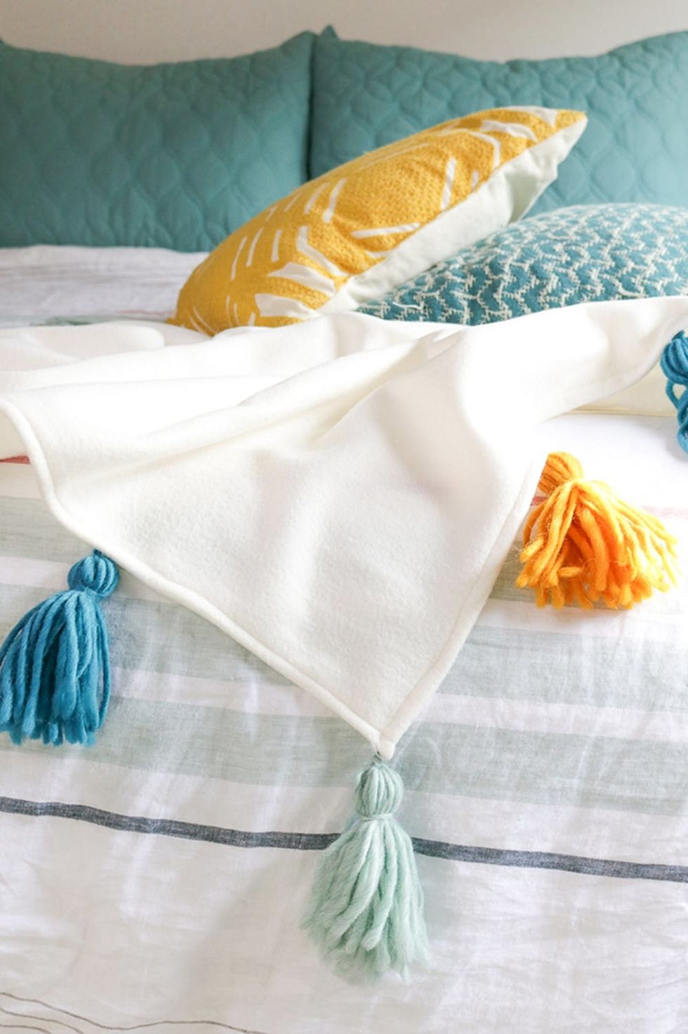4. DIY Fleece Tassel Blanket: March doesn’t mean the end of cold nights and chilly mornings. This pastel throw blanket lets you cuddle up without messing up your room’s springtime vibe. (via Club Crafted)