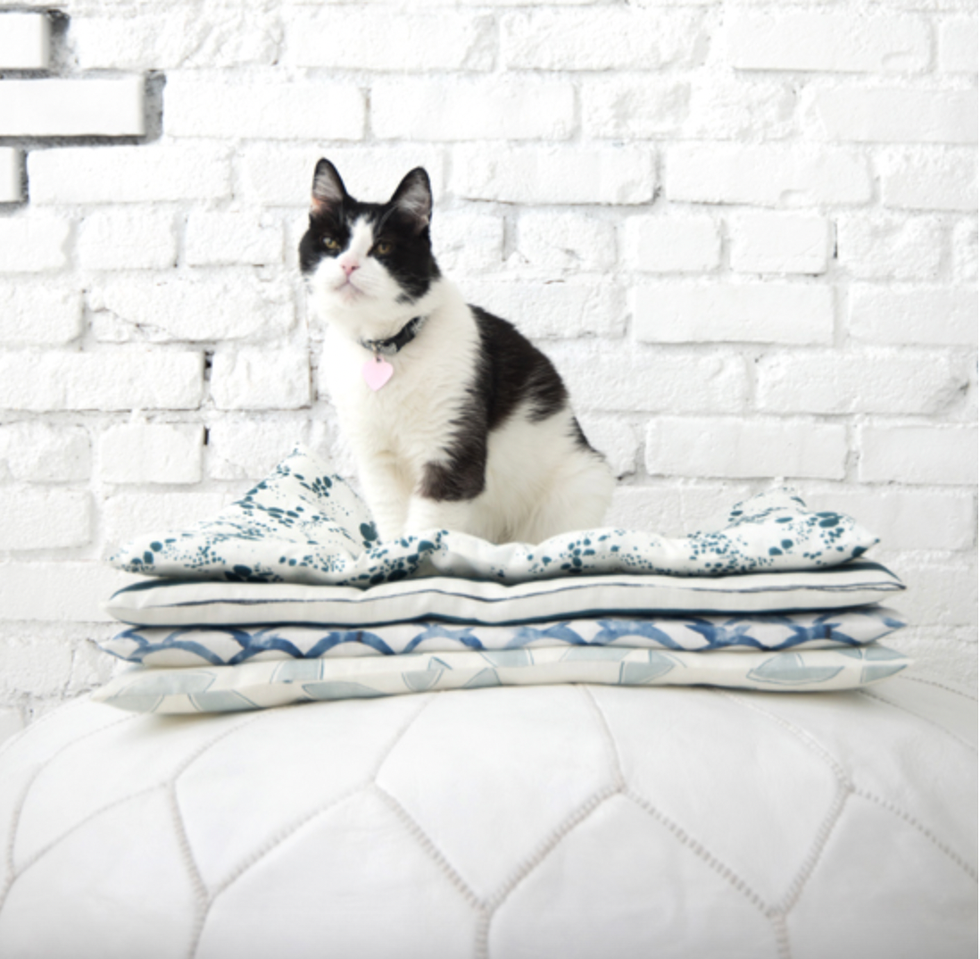 16. Cat Bed DIY: Finding cute pet beds to match the decor can be tricky. Pick out a patterned fabric (or paint your own) and your critter will be snoozing on one flashy bed. (via DesignLoveFest)