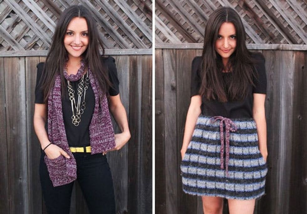 1. Repurpose Sweaters into Skirts + Scarves: Got a sweater that’s a little worse for the wear after this winter? Turn it into a skirt or pocket scarf, perfect for brisk spring nights.