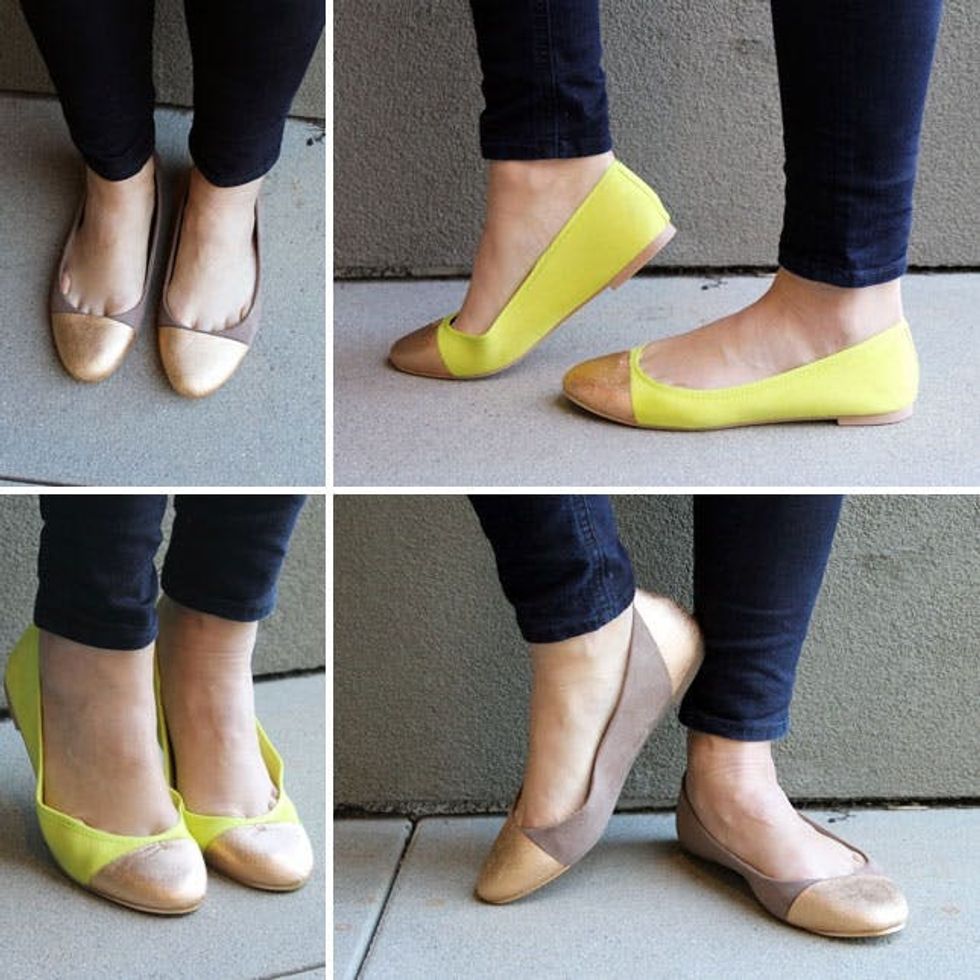 6. Gold-Tipped Ballet Flats: Flat season is here! No more heavy boots with the thickest socks you can find. Spice up your basic ballet flats by adding gold to the toes and heels.