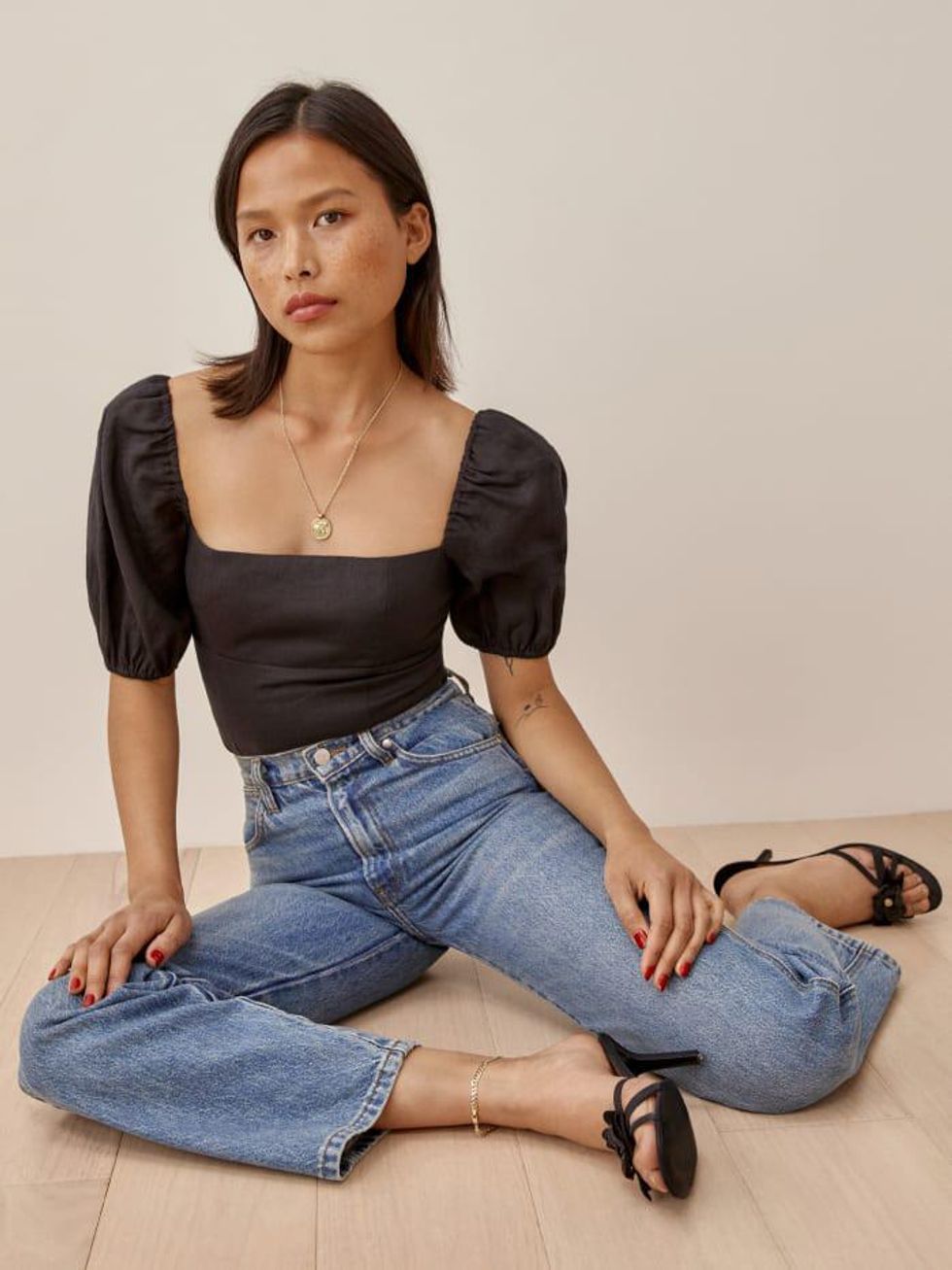Black is always in season and this slim-fitting bodice (from a sustainable brand) makes it perfect for spring date nights.