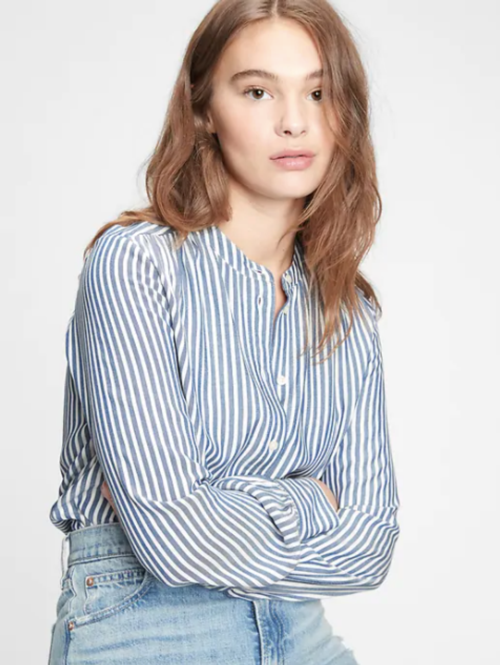 Mixed stripes and oversize collars are two trends we're loving right now.