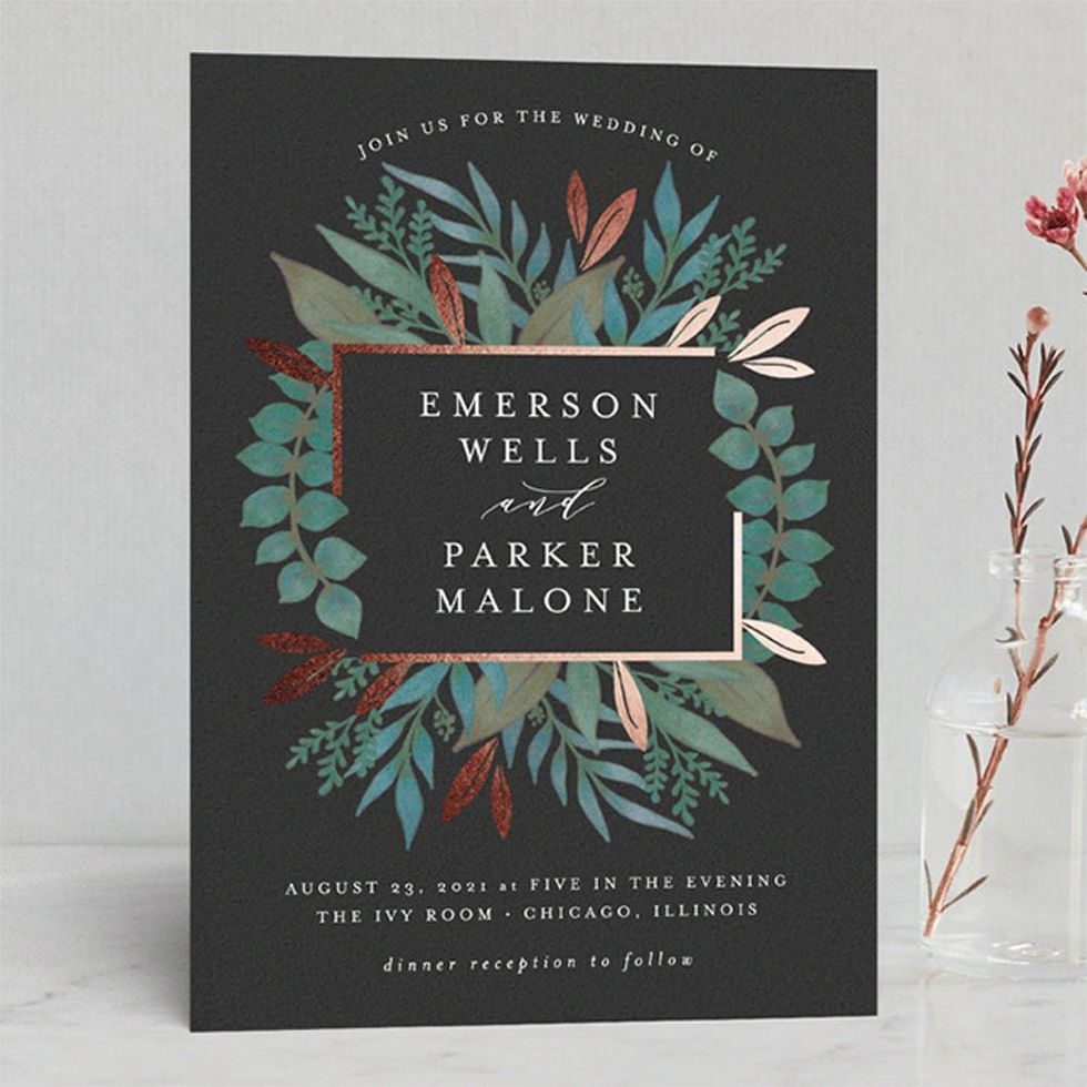 We’re fans of mixing and matching trends, and pairing bold florals with foil-pressed outlines is just the right amount of attention-grabbing detail for a spring invite.
