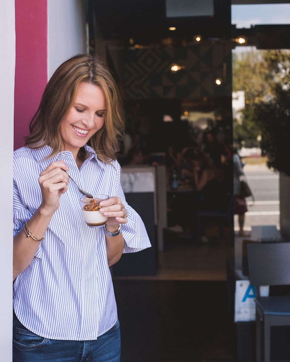 Candace Nelson: As soon as I wake up, I drink an entire glass of water for hydration and then a mug of coffee with almond milk in an attempt to bring my energy levels up to those of my 10-year-old and seven-year-old boys. I make breakfast, pack lunches, and then take them to school. Once the boys are dropped off, I always take a power walk with a girlfriend or do a strength training session with my trainer. After showering, I try to squeeze in a meditation before starting my day.
