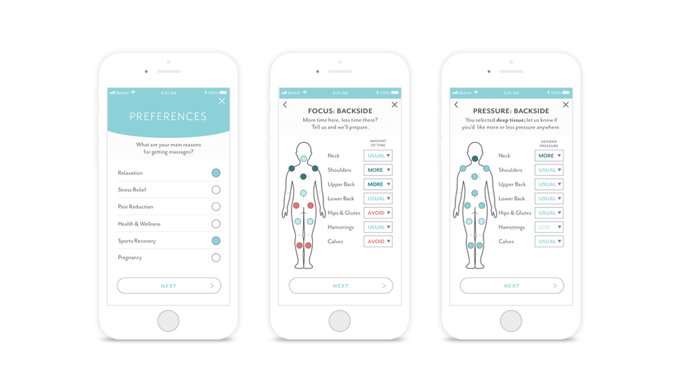 Clients book appointments, choose therapists, pinpoint pressure points, and select oil or cream for the treatment all via the app. Oh, but the technology doesn’t stop there. Once you’re off the app and in the room, an iPad lets you customize lighting, heat, music, and volume. After the appointment, you can hop back in the app to review the experience/therapist and tip at your leisure.