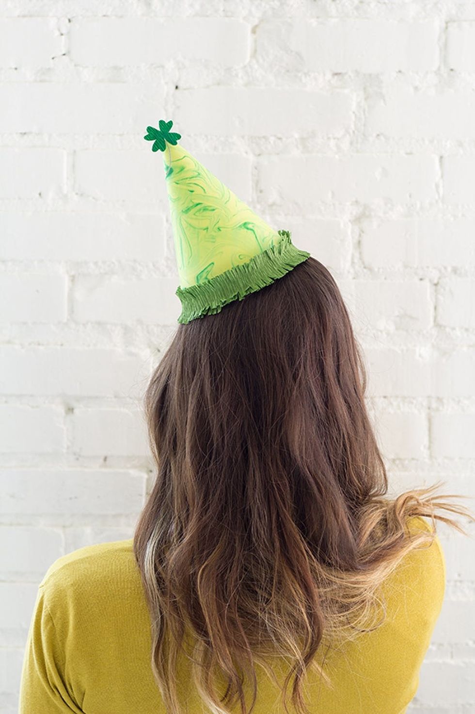 25. DIY Marbleized Party Hats: We can’t get enough of this technique, and it looks just as good on green hats. The tissue paper fringe and shamrock pom-pom make these a surefire crowd-pleaser. (via The House That Lars Built)