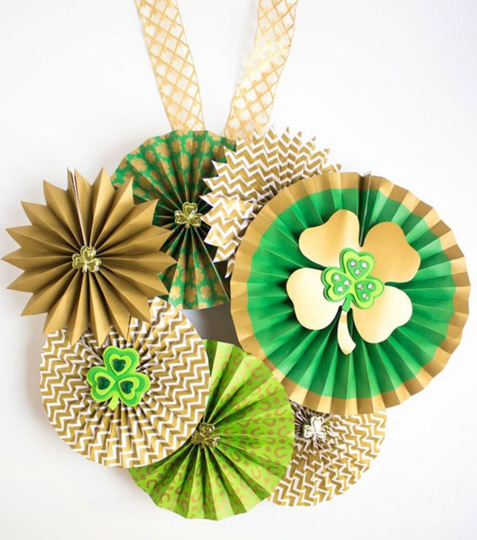 3. St. Patrick’s Day DIY Shamrock Streamers: These shamrocks make festive garlands, chair decorations, and photo booth backdrops. Or, take it to the wall and hang strands from the ceiling behind your dessert table. (via Studio DIY)