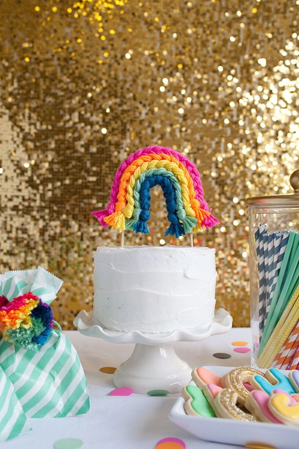32. DIY Rainbow Cake Topper: This cheery rainbow will brighten any plain Jane cake. (via Tell Love and Party)