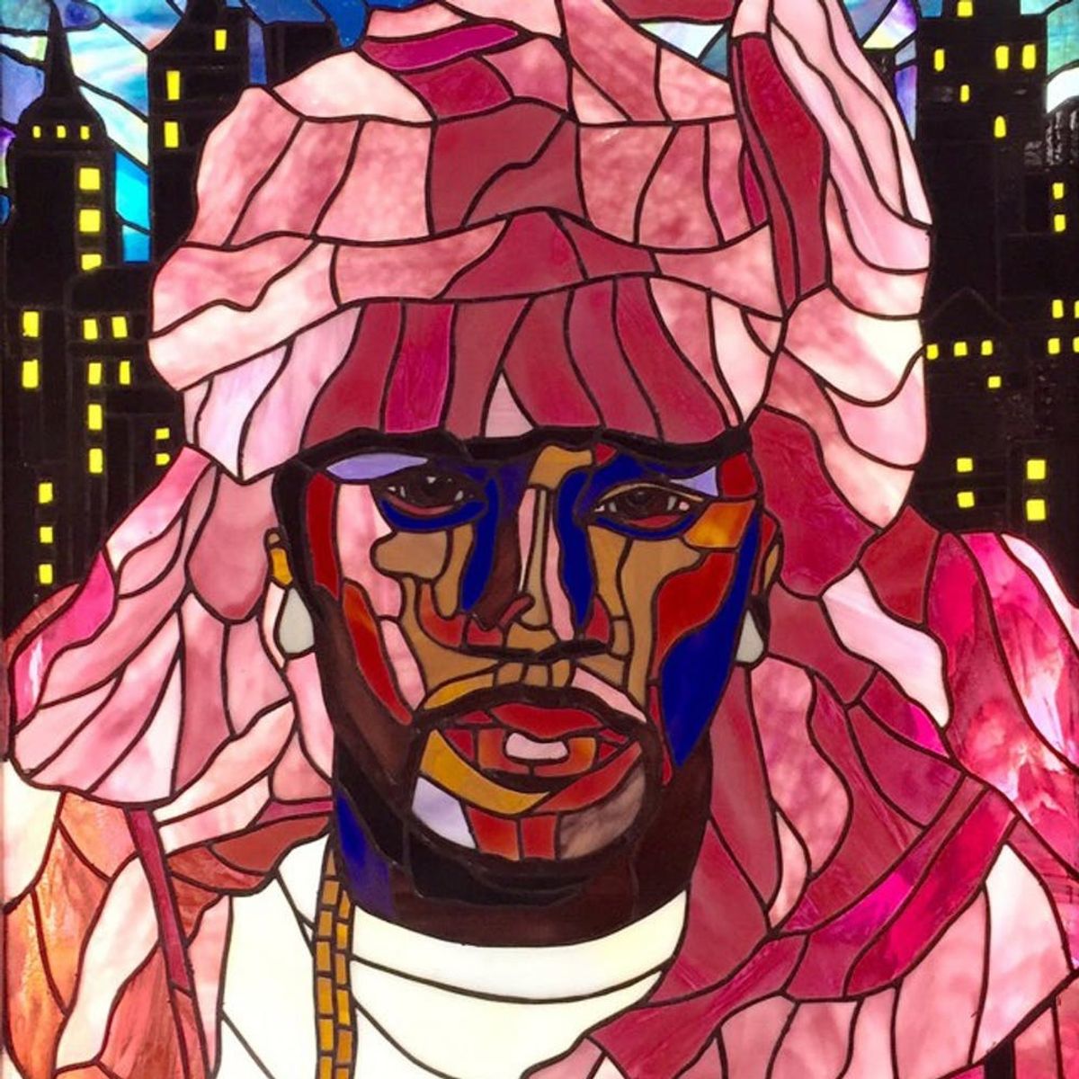 Yes, that is a stained glass portrait of Cam’ron, the rapper, and of course, he approved, calling it “#Dope.”