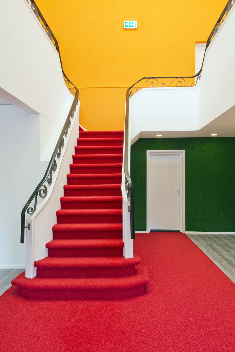 4. Bold Carpet: Color block your home with carpeting for a dramatically bright effect. (via Getty)