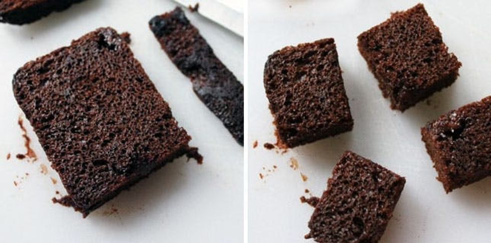 Cut your pound cake into squares or rectangles.