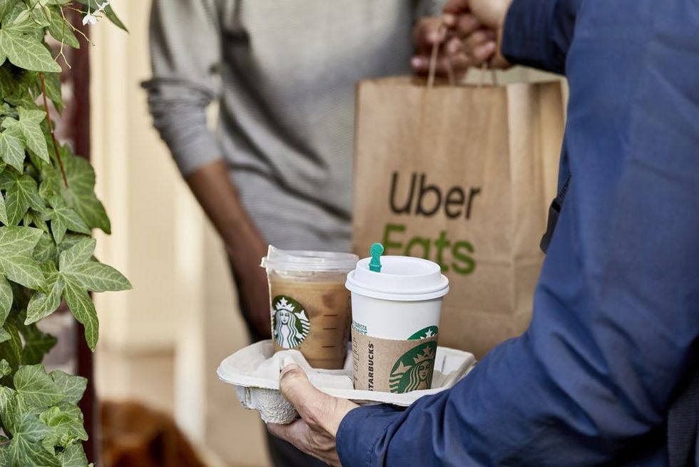 (Photos via Starbucks and Uber Eats)
