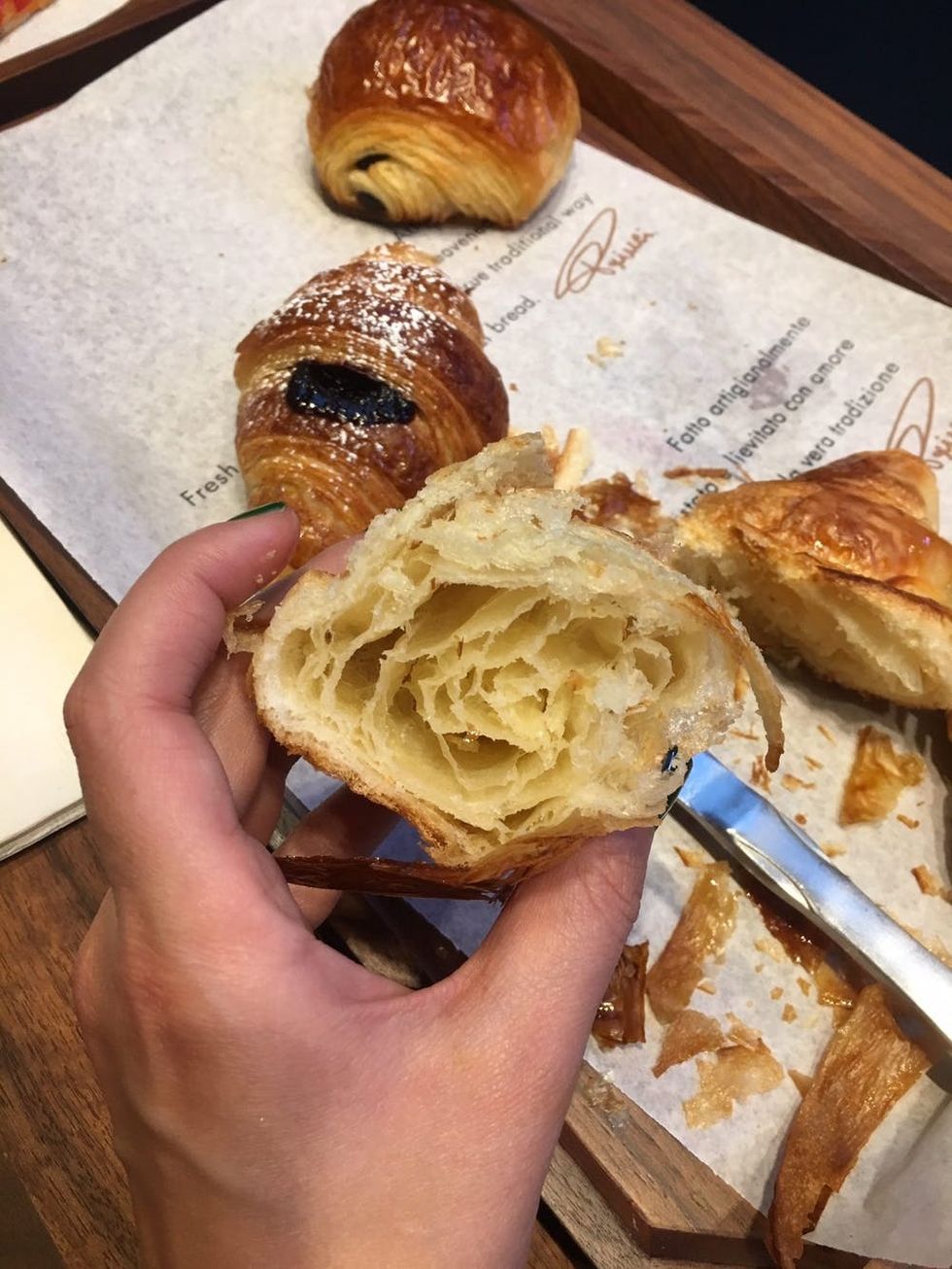 Another standout on the menu is the cornetti, which are like tiny Italian croissants. These flakey, buttery delights break open to reveal a honeycomb interior. Though you can’t go wrong with the plain cornetti paired with freshly brewed coffee, the stuffed cornetti are worth sinking your teeth into as well. The Nocciola (filled with chocolate hazelnut spread), Mirtillo (loaded with a sweet blueberry jam), and Cioccolato (rolled with pieces of chocolate inside) are all