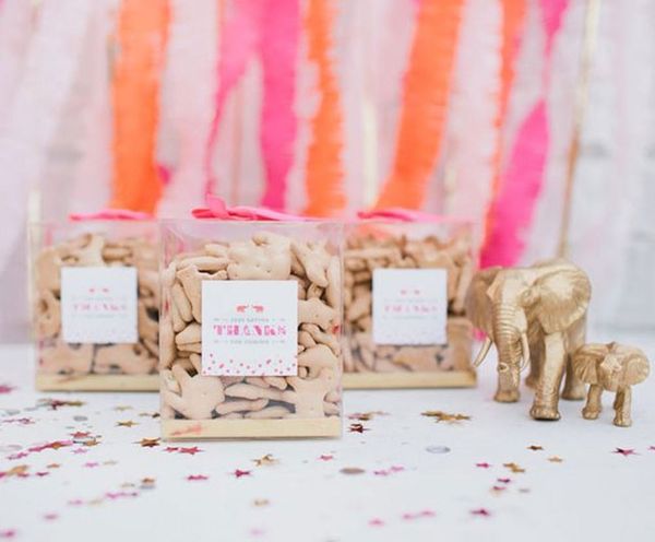 9. Animal Cracker Favors: Re-package a stable full of animal crackers into clear boxes adorned with ribbon and a gift tag for a no-stress favor. (via Confetti Pop)