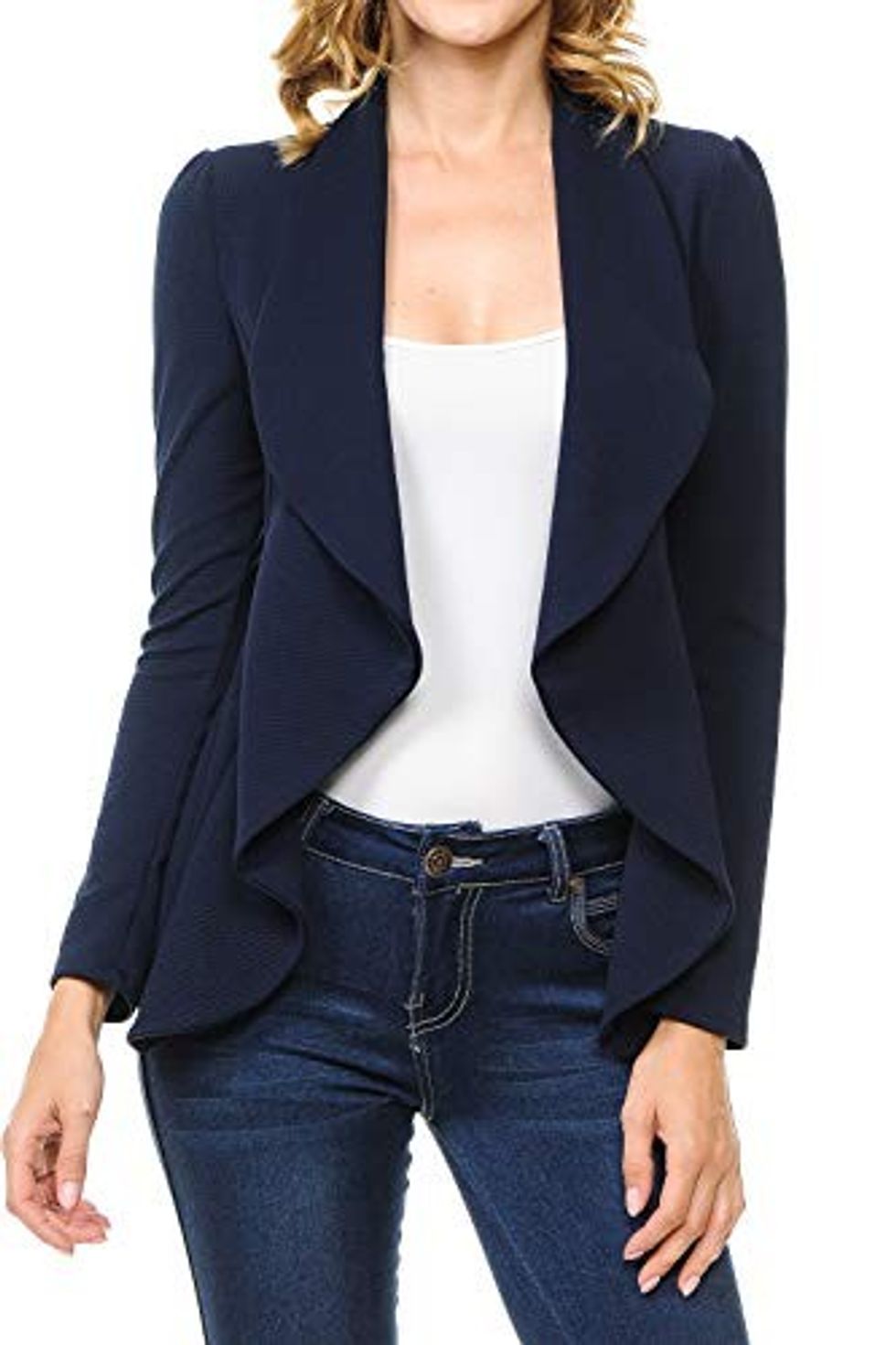 You might think of blazers as a bit stuffy, but this classic open front blazer has a more casual feel that means you can wear it to the office, or throw it on over something mesh and sultry for your next date.