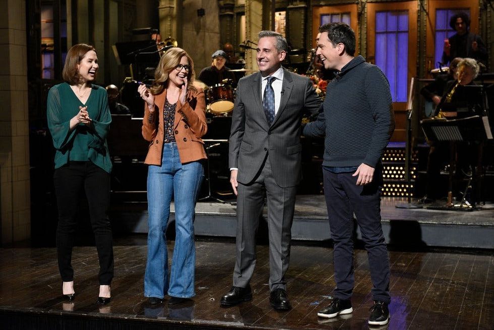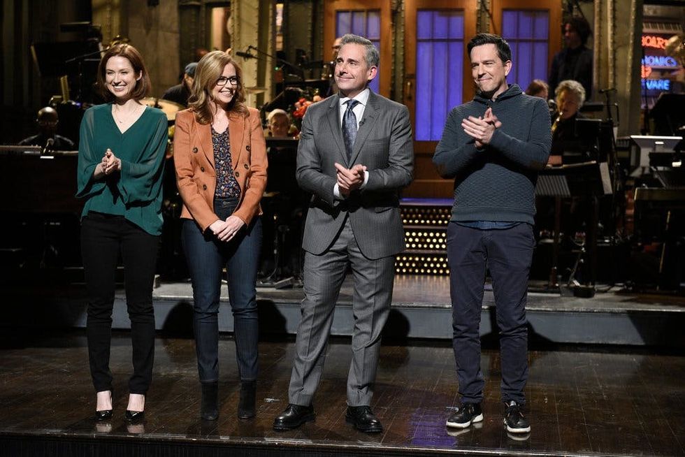 Since news first broke last December that a revival of The Office might be in the works at NBC, fans of the sitcom have been left to patiently await updates. While the show’s star, Steve Carell, has been busy taking on increasingly serious roles (like in October’s tear-jerking Beautiful Boy) and not talking about the buzzed-about reboot, he did give Saturday Night Live viewers a glimmer of hope with a mini Office reunion during his opening monologue.