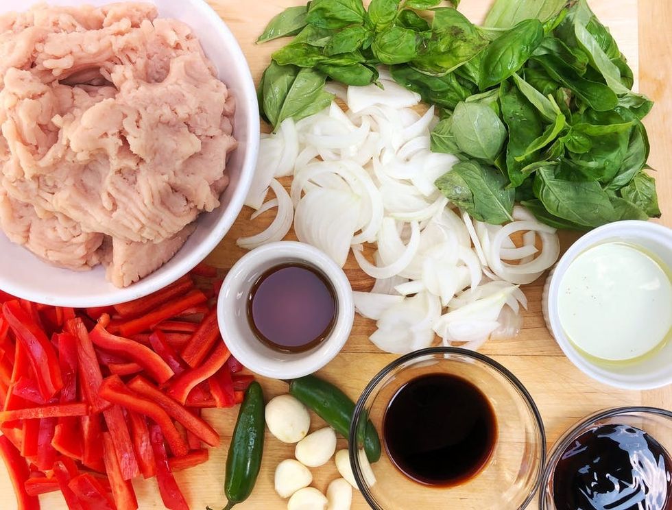 - 2 handfuls Thai basil leaves (1-2 bunches depending on size)