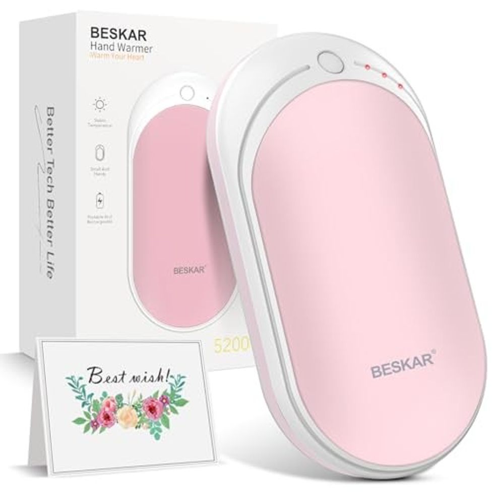 From sporting events to extra-chilly days, these hand warmers make it easier to keep your hands toasty. Their temperature is adjustable up to three levels, and they only take a few seconds to heat up to 130 degrees Fahrenheit. The best part? They can deliver up to 20 hours of warmth before their batteries recharge.