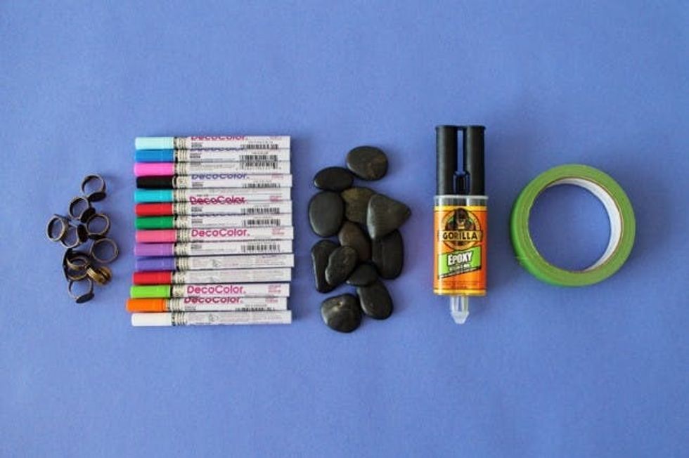 Gather your supplies. We found a bag of black stones at Bed Bath & Beyond, but you can also try garden stores, hardware stores, and the like.