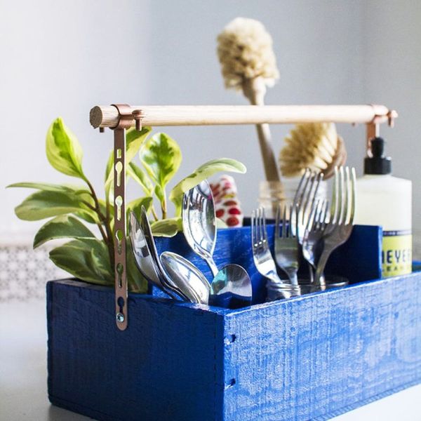 4. DIY Utensil Organizer: Small living often means everything is out on display due to very few storage options. You might as well make it pretty storage and free up an extra drawer in your kitchen by putting all the silverware in a DIY basket. You can leave the basket on the table for the easiest table setting ever. (via A Beautiful Mess)