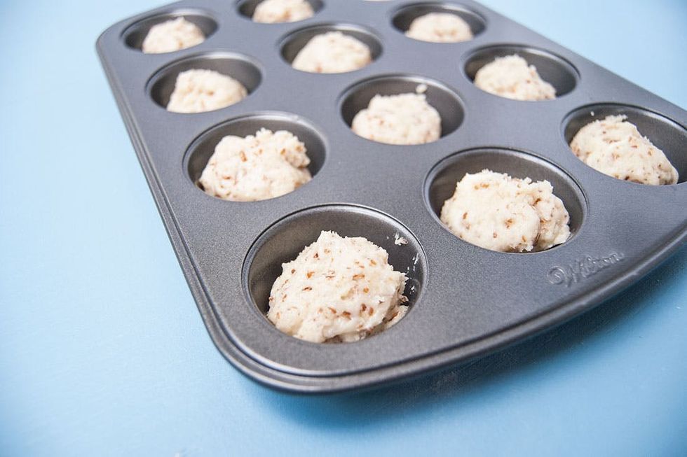 Roll the dough into small balls, and place them in mini cupcake tins.