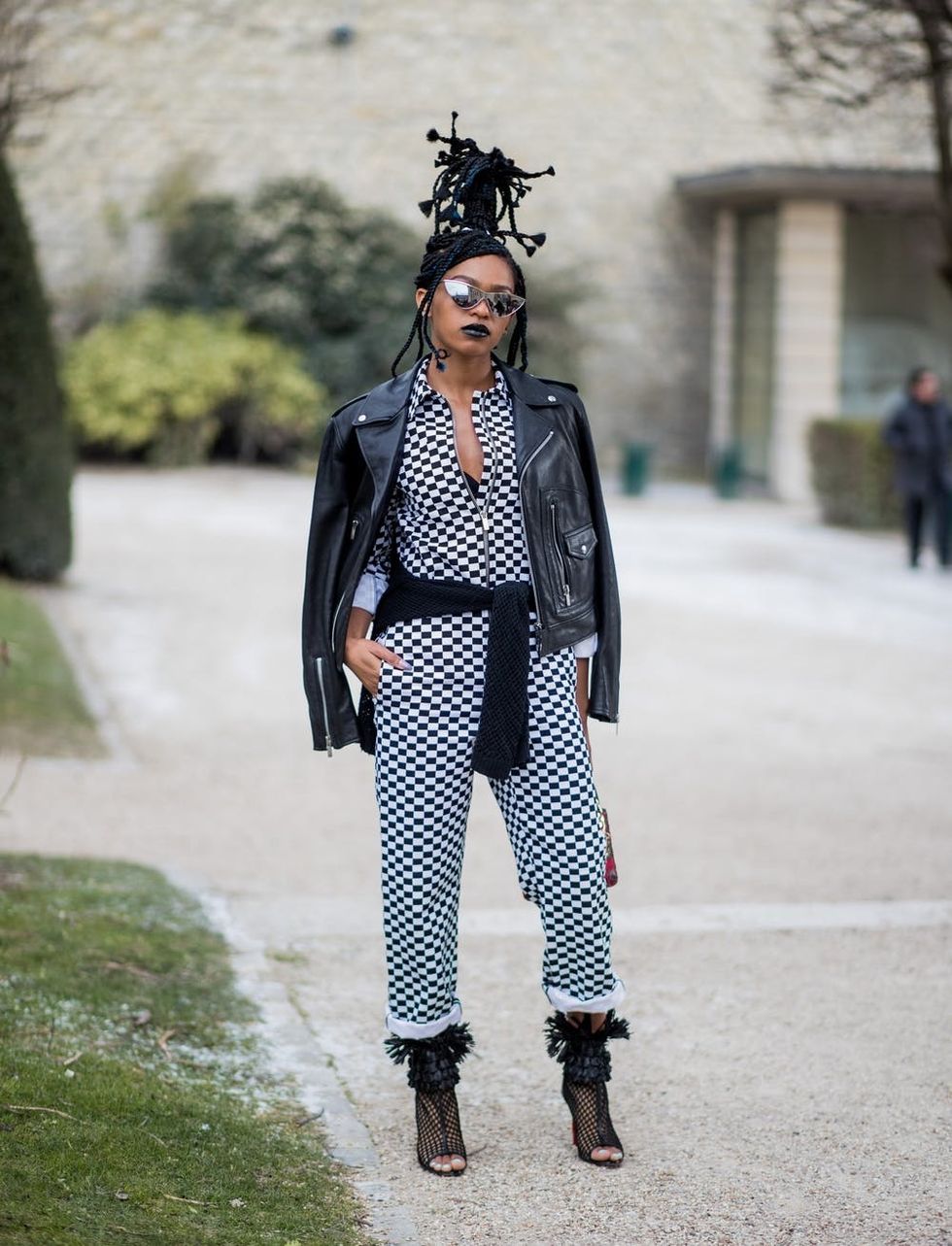 3. Rock a jumpsuit. In case you missed the memo, everyone is still obsessed withjumpsuits. Kick your cute coveralls up a notch and pair them with pretty pumps and a black biker jacket for a truly opulent effect. (Photo via Christian Vierig/Getty)