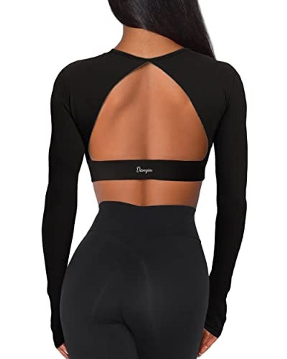 Discover the perfect balance of style and warmth with this stylish Workout Top, designed to keep you comfortable as you transition into fall. Featuring a long-sleeved crop design, it's the ideal choice for those chilly workout days when you want to stay cozy without sacrificing your style. What sets it apart is the flattering open back, ensuring that your fashion-forward choices don't have to take a backseat at the gym.