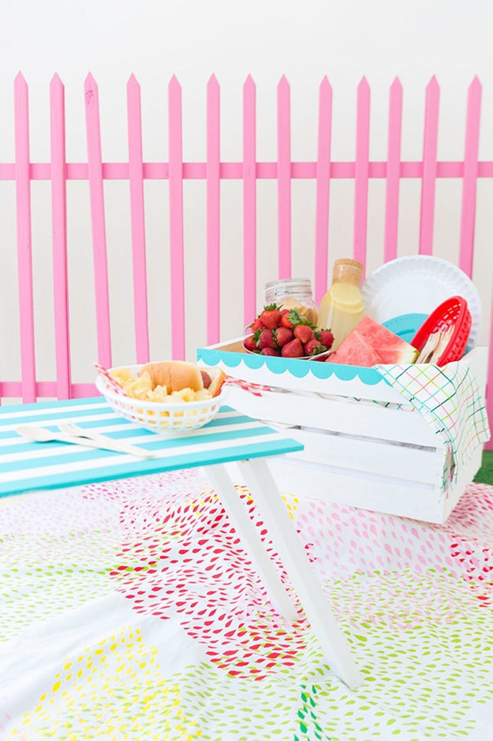 3. DIY Watermelon Picnic Basket: Celebrate picnic season with a DIY basket that screams summer. This watermelon-inspired project requires only acrylic paint and painter’s tape. (via Studio DIY)