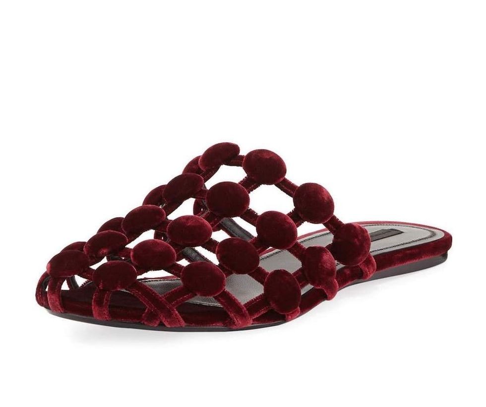 Running around in heels while entertaining guests is a recipe for sore steppers. When slippers need to be practical and play well with your outfit (priorities!), opt for a laid-back luxe option like these Alexander Wang Amelia Studded Caged Flat Velvet Mules ($595).