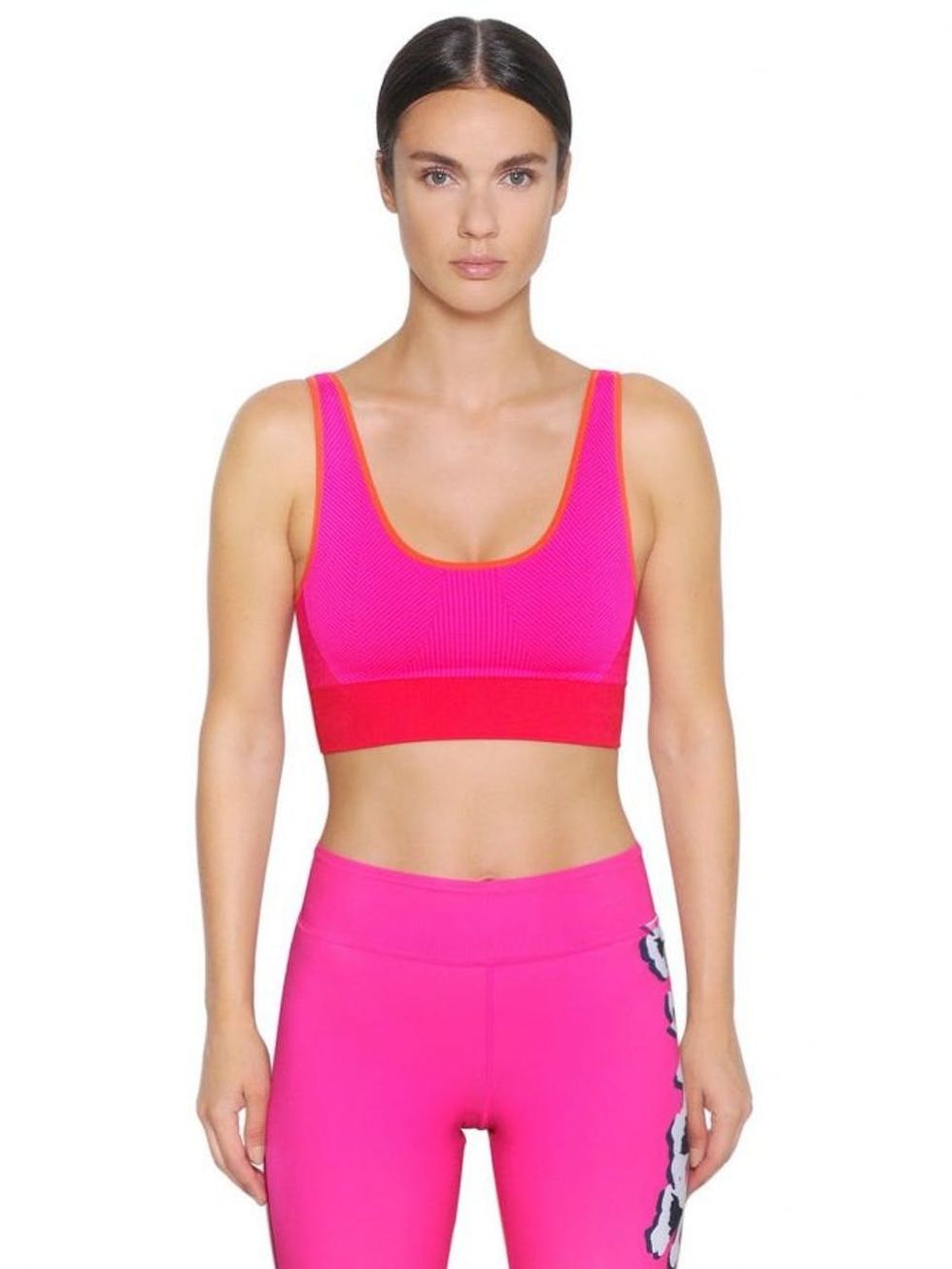 2. Pink and red are a must-try combo right now. Not ready to rock it in your regular wardrobe yet? Try it in workout wear, like this Adidas by Stella McCartney Performance Seamless Climalite Bra Top ($60).