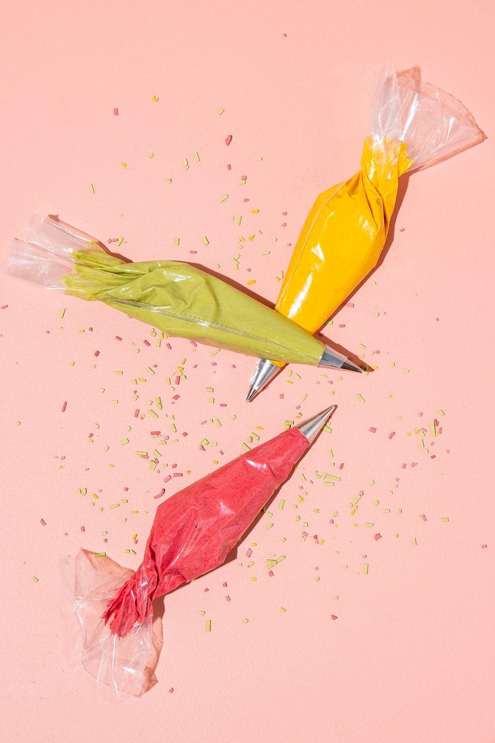 No matter what diet you are on, it seems like sprinkles are probably not compliant… until now. It starts with a recipe similar to a royal icing, but it’s turned sugar-free thanks to Lakanto powdered monkfruit sugar. And because we’re trying to keep things as natural as possible (especially for those why dye allergies), we used ingredients like matcha tea powder and beet powder to add bright hues to the mix. The wet mixture is transferred to piping bags, piped out into long, thin lines, dried, and then cracked into tiny sprinkles to be applied to all your confections.