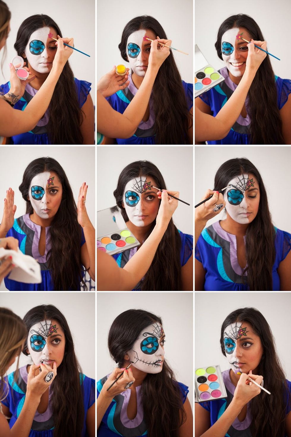 – Your regular “dress-up” makeup (for the non-skull half of your face)