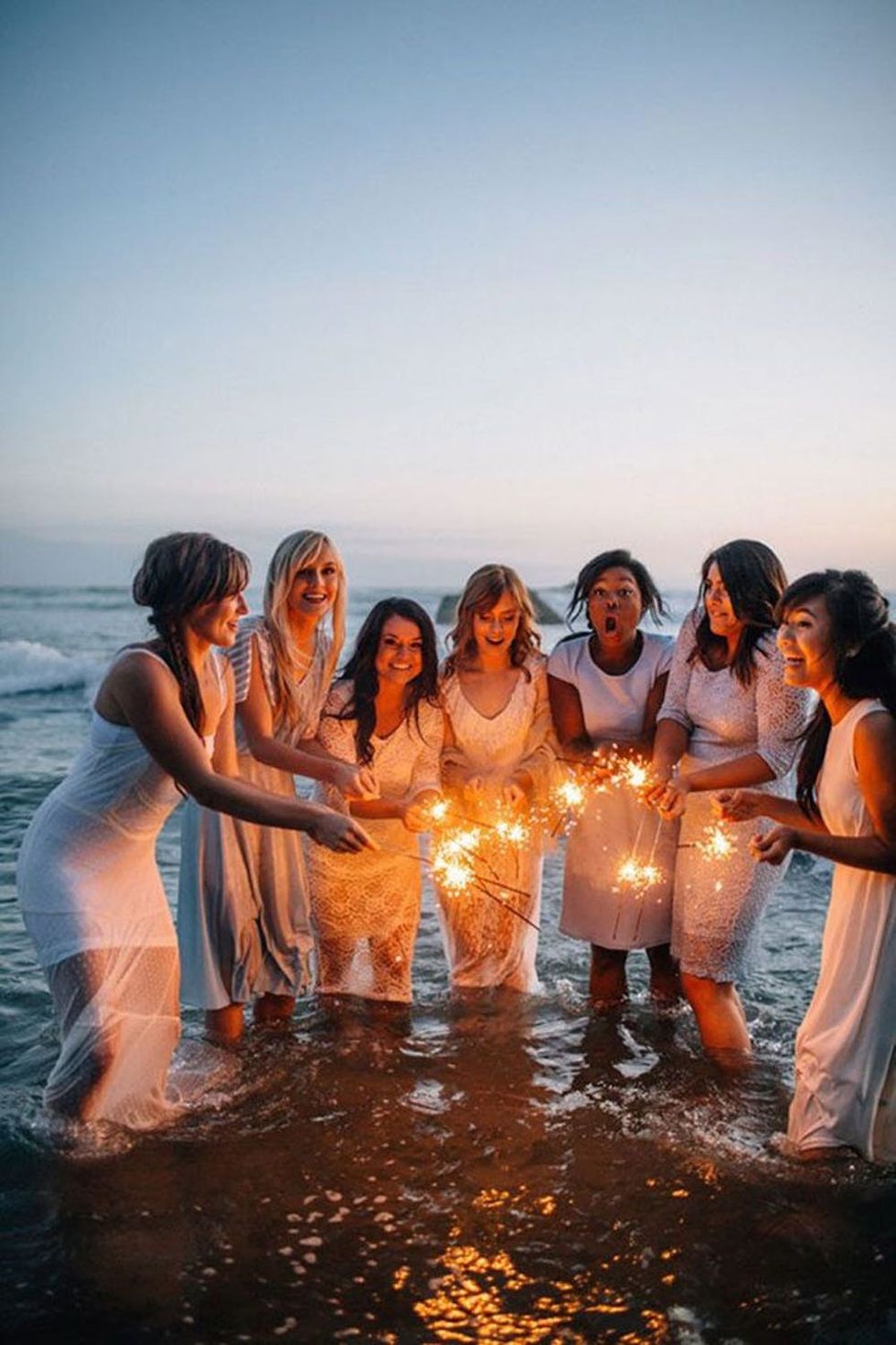 9. Nautical Beach: Take the party seaside with nautical stripes, seashells, and sparklers galore. If you’re nowhere near water, you can still bring the beach to your bride with fun decor. (via Kristen Duke Photography/ Elegant Wedding Invites)