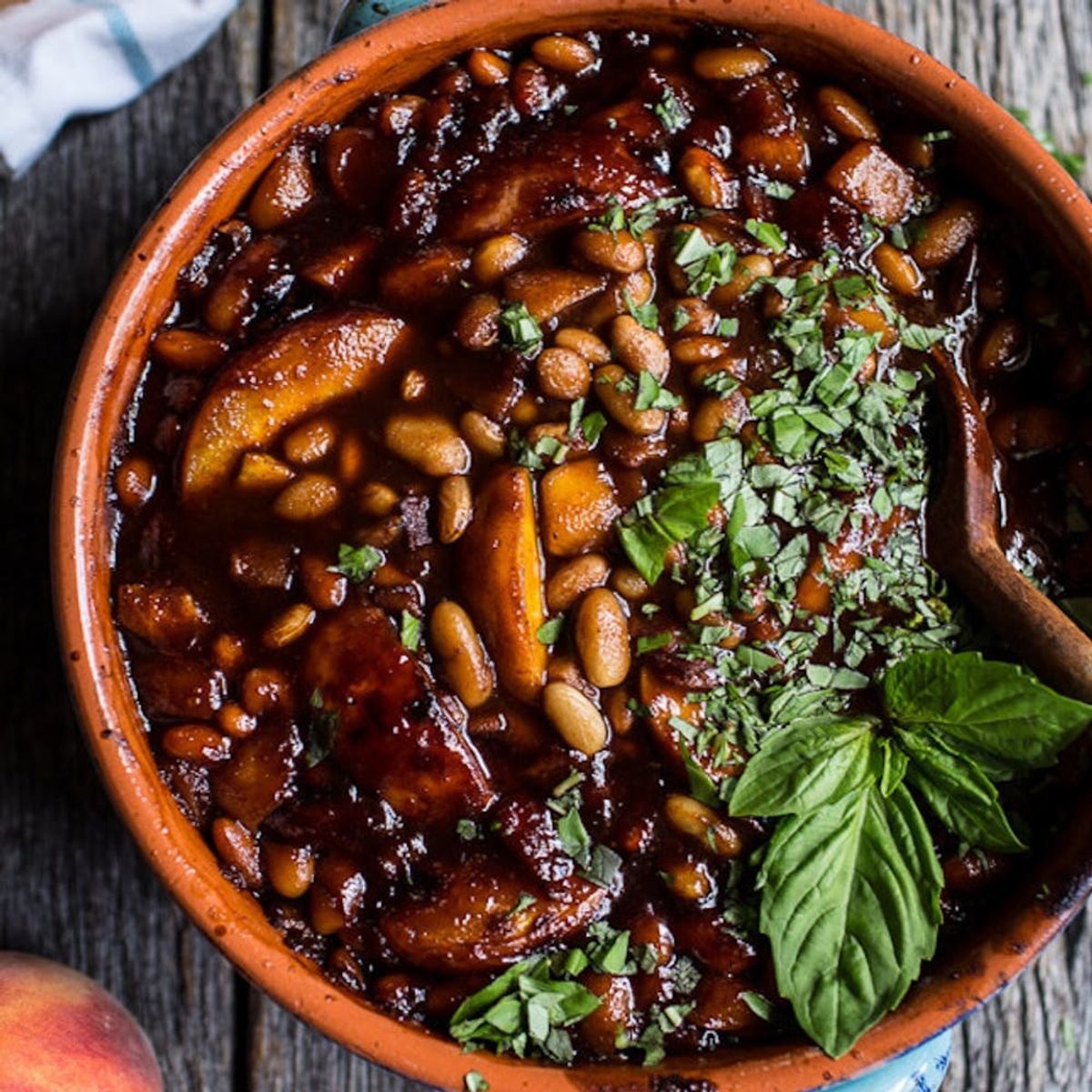 Chances are, every BBQ you’ve been to had baked beans stationed next to the grilled corn. And why not? They’re tasty, hearty, and can be made with *minimal* effort. We dug up 15 recipes with flavors ranging from peach-bourbon to cold brew coffee and everything in between. Keep reading to scroll those beautiful bean images and plan out your summer potluck menus.