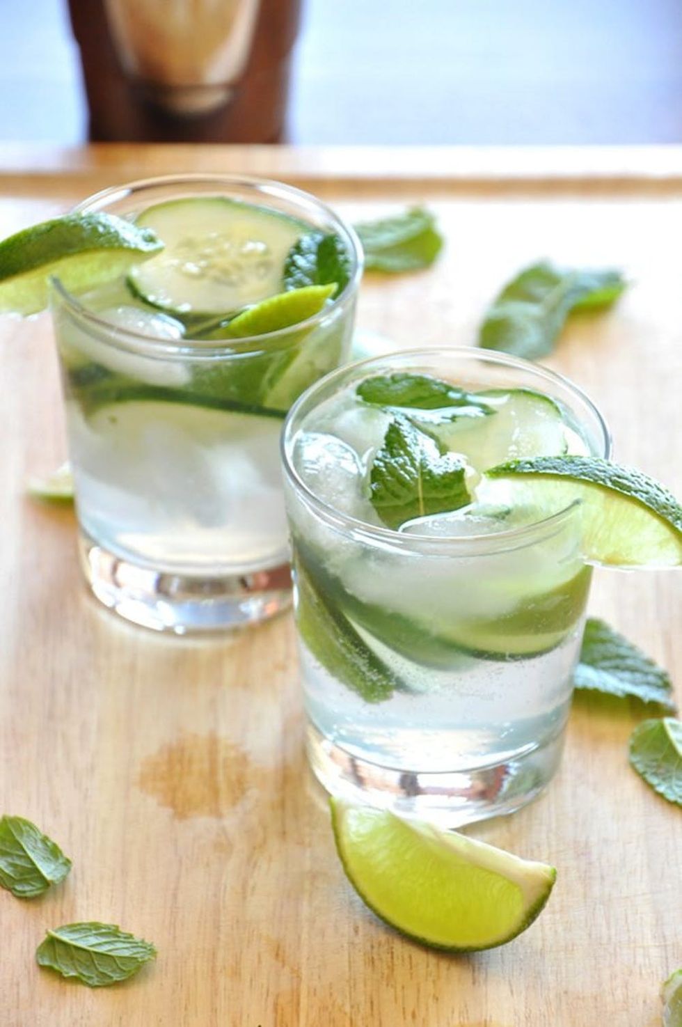 6. Keep drinks clean and light. Your beverages should be refreshing and offer a nice balance to any heavy dishes. Cocktails with citrus or herbal notes like this cucumber cooler are perfect for warm weather. (Recipe via Minimalist Baker)