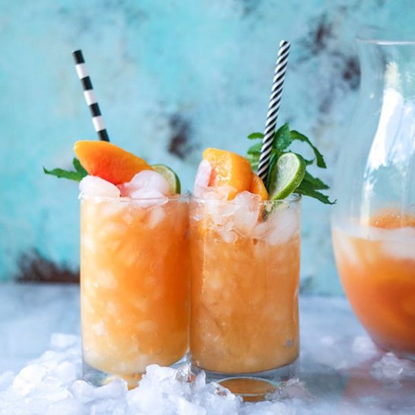 7. Have plenty of non-alcoholic options on hand. Keep your guests hydrated in the heat. An agua fresca is delicious and festive. Plus, have you ever seen a prettier drink than this pineapple and peach version? (Recipe via How Sweet It Is)