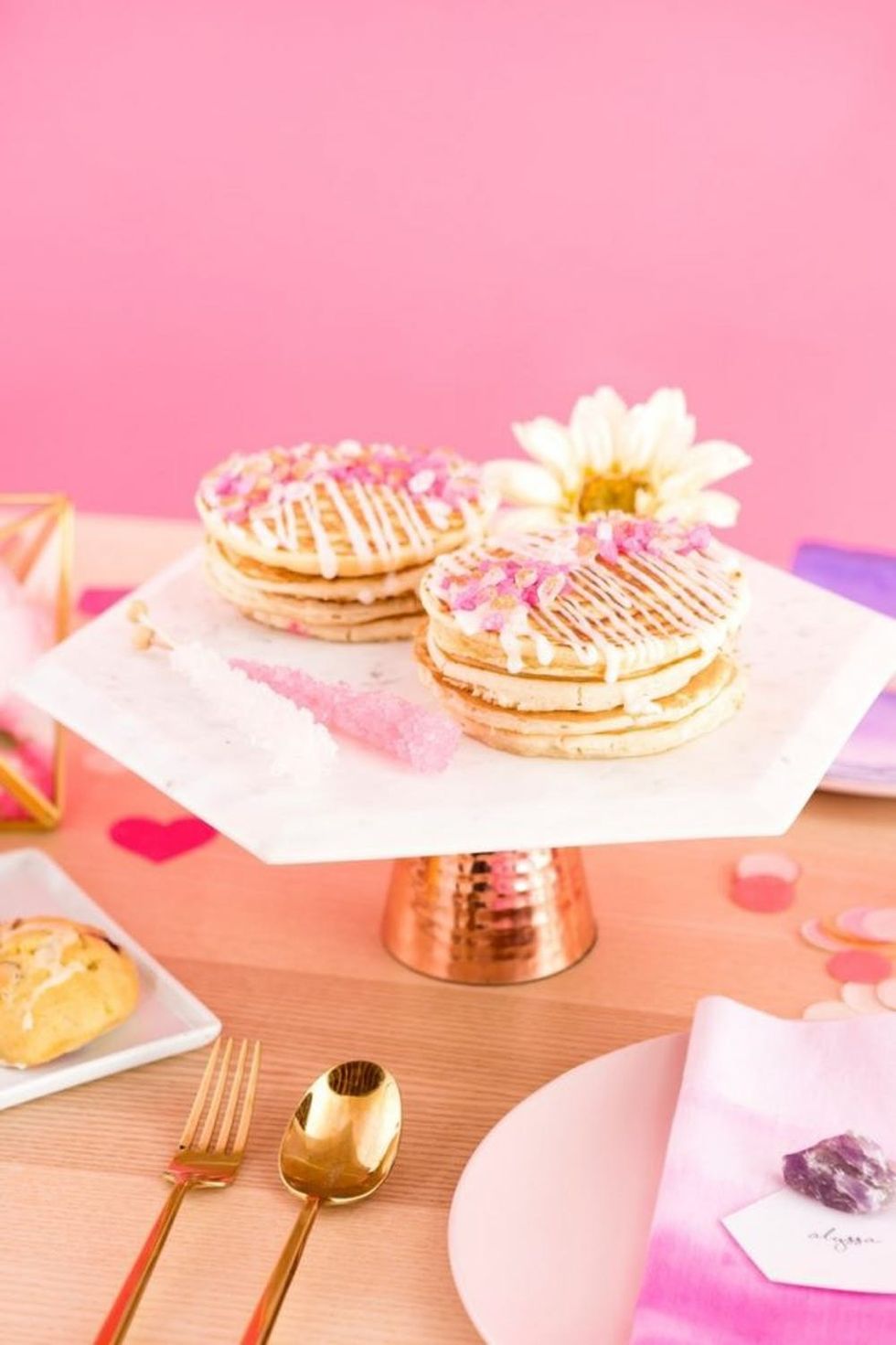 4. Gem-Inspired Brunch: There will be *tons* of photo ops at this sparkly brunch, so up the ante with jaw-dropping rock candy pancakes. You can customize the table setting with quartz place cards and bask in the Instagram glory for weeks. (via Brit + Co)