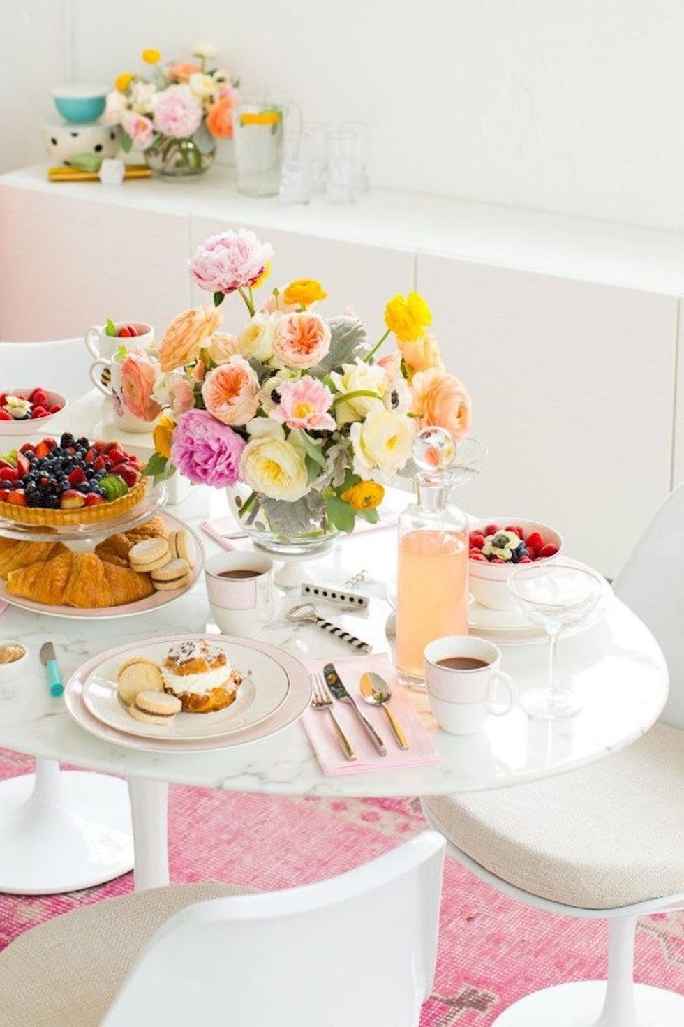 8. Rosé All Day Brunch: #RealTalk: It isn’t brunch without a well-stocked bar and several bottles of rosé. This summery setup has everything you and your gang could ever want: coconut acai bowls, watermelon salad, and plenty of the pink stuff. (via Brit + Co)