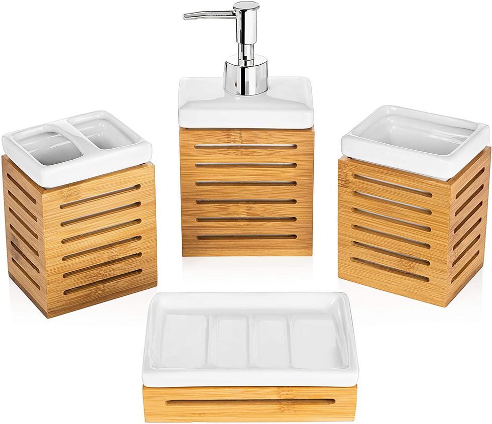 19. 4-Piece Bamboo Bathroom Accessories Set ($30)