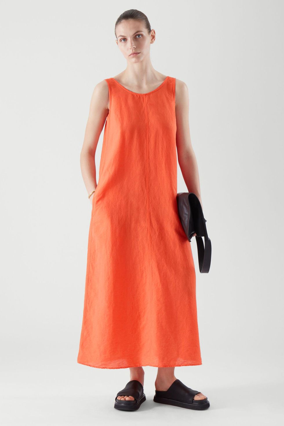 COS Low Cut Back Linen Dress ($115): A bright orange dress is a bold statement, but this modern cut and lightweight fabric makes it wearable for even a casual summer outing.