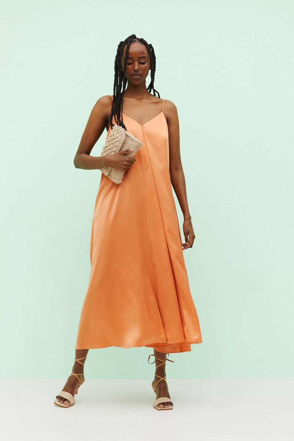 H&M Satin Dress ($35): A satin midi dress and cute sandals is the perfect formula for easy summer glamour. Slip on this bright orange number and you'll be all dressed up for a dinner date or wedding party.