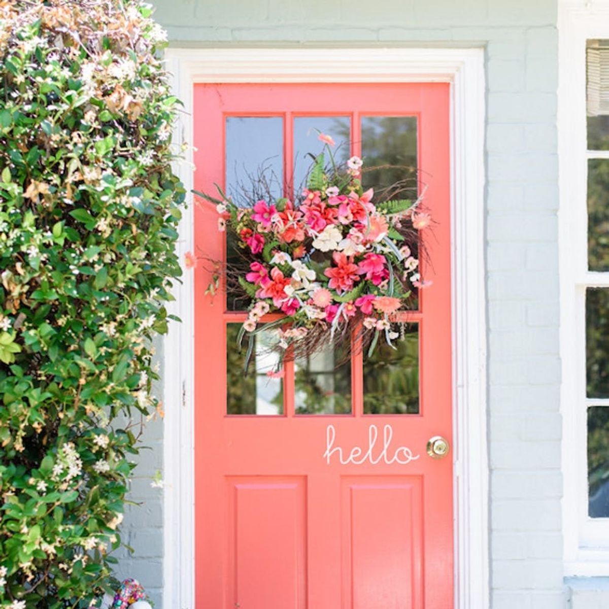 Coral All Day, Erry Day: Paint that front door in the shade of coral that speaks to you. Then hang a vibrant floral wreath and a hand-painted greeting near the doorknob. (via Southern Weddings)