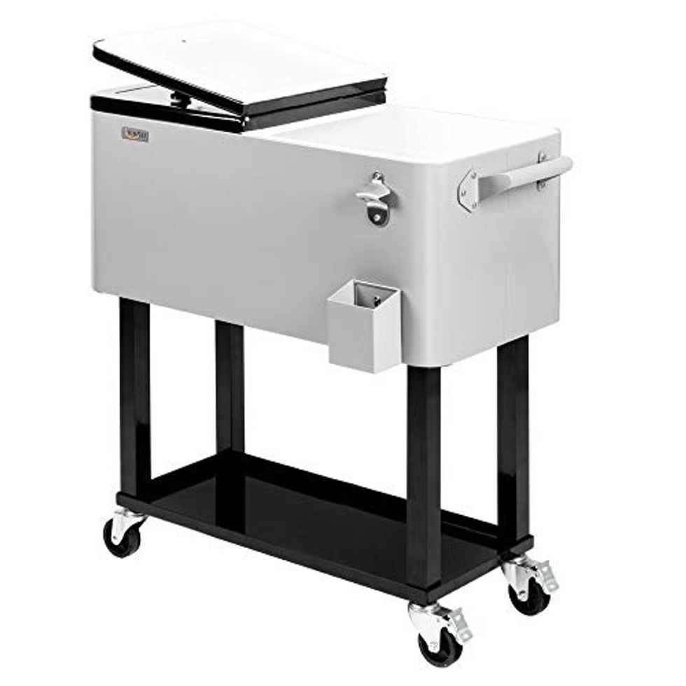 There's no need to worry about a little rain in the forecast, as this bar can roll right back inside. The inner cooler can hold over 90 cans on ice, with plenty of space for all those mixers and chilled tequila you want to keep inside. The wheels lock in place to keep it steady if you need to use the top as a table, and there's even a bottle opener affixed to the side.