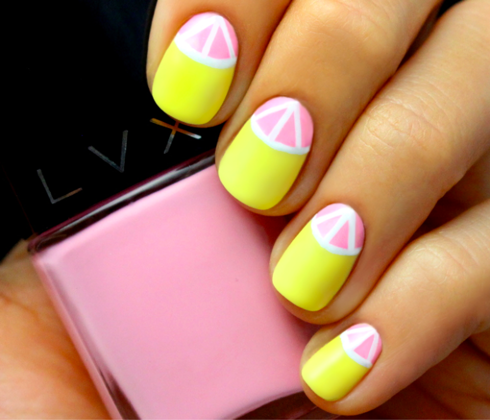 Yellow and Pink Grapefruit Nail Tutorial: For those of us who aren't up for elaborate nails, but still want to partake in the spirit of summer, this simple and chic grapefruit nail art is just the thing. (via LuLu's blog)
