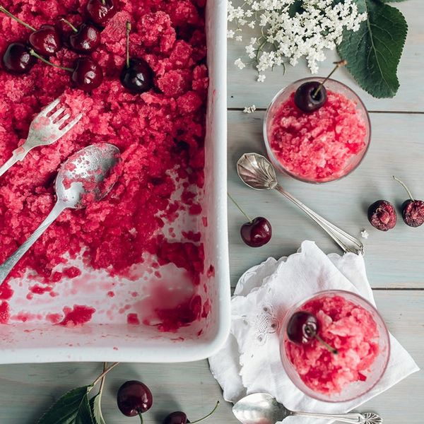 1. Cherry + Elderflower Granita: Ever tried elderflower liqueur in your cocktails? No? Well, it’s AMAZING! Mix it with some cherries and you have the perfect summer sweet. (via Jet and Indigo)