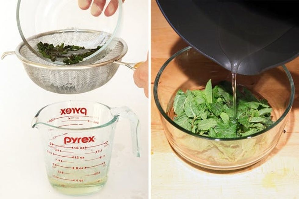 1. Remove fresh mint leaves from stems and place in a heat-proof bowl.