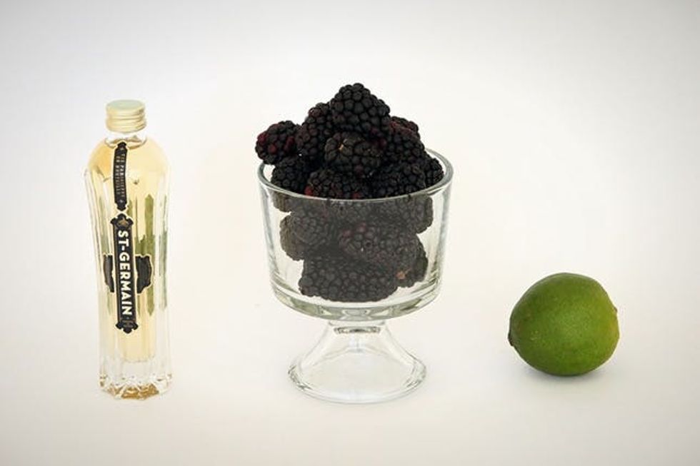Add water and sugar to a medium sauce pan and heat over medium-high heat until sugar is dissolved. Remove from heat and cool before using. Puree blackberries in a blender until smooth. Strain out seeds with a fine sieve (optional). Measure and add lime juice, lime zest, elderflower liqueur, and simple syrup. Blend to combine.