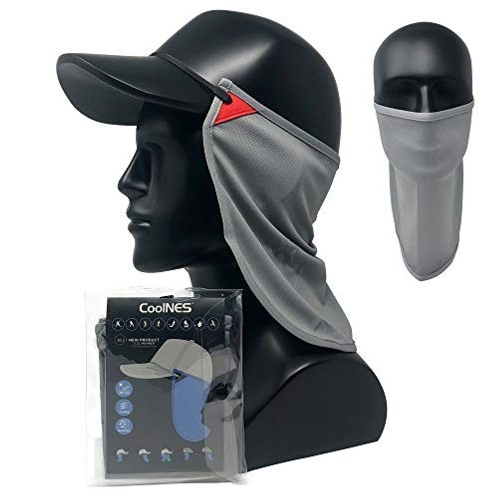 See it on AmazonThis 2-In-1 Face And Neck Drape Wraps Around The Hats You Already Have