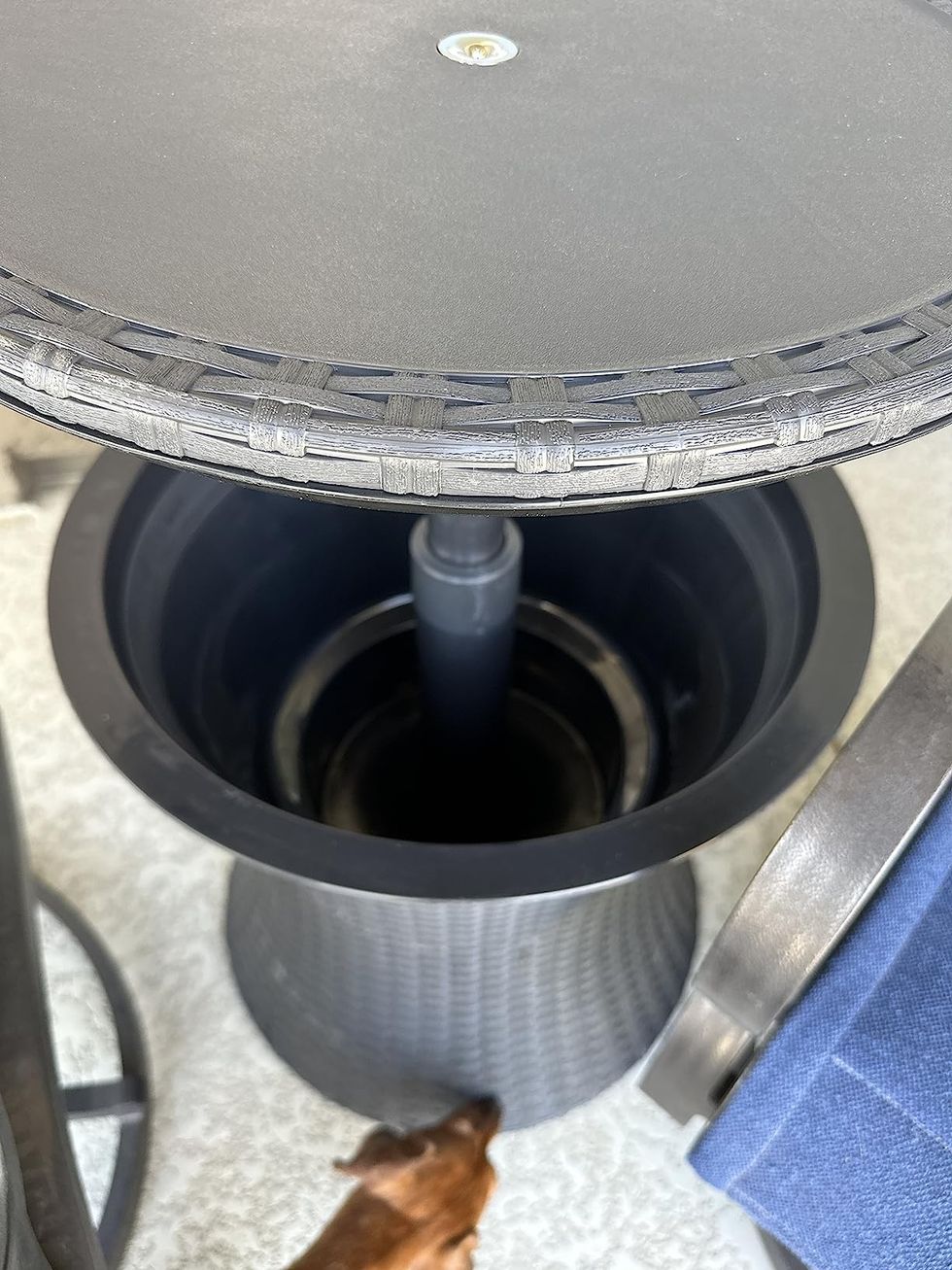 This Patio Side Table doubles a a 7.5-gallon beer and wine cooler. It keeps your drinks chilled and easily accessible while lounging on your patio or next to your hot tub.