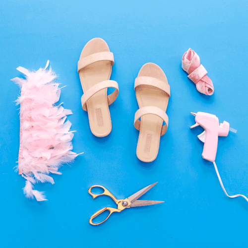 OMG. Shoes! Well, actually, sandals! From the Fenty Collection (Rihanna’s Puma collab) to the Mercedes Castillo stacked petal sandals, summer footwear is getting a major upgrade. This season, it’s all about making your feet feel fancy fresh with some serious sandal embellishments. We’re giving you four easy hacks to help you get ready for the ultimate #shoefie summer. So, grab your ribbons, feathers, and ruffles, heat up your hot glue gun, and read on!